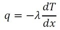 フーリエの法則の3次元版は熱流束qがベクトル量となり、次式のように表すことができます。ベクトル量は太字で表記します。
