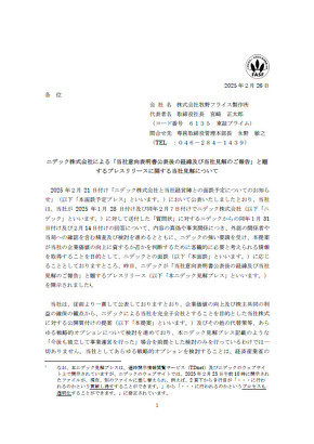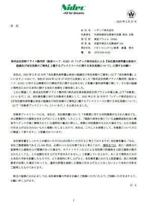 牧野フライス製作所は、ニデックが2025年2月25日に公表したTOB(株式公開買い付け)に関する見解について、文書において意見を表明した。ただし、ニデックも、同月27日に追加で文書を発表している。