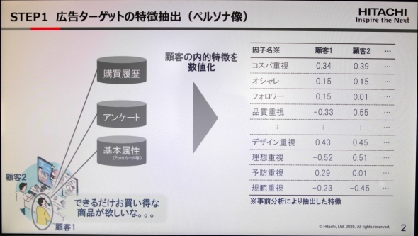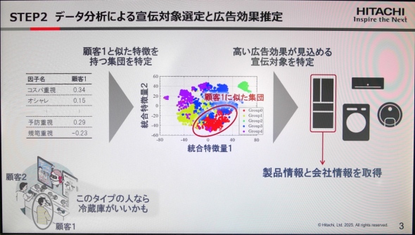 この技術は野村総合研究所の「マーケティング分析コンテスト2023」で優秀賞を受賞している。「今回の展示会で来場者に紹介することで、ニーズや実用化に向けて必要なことなどを洗い出せれば」(日立の説明員)としている。