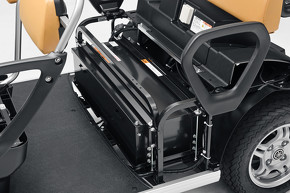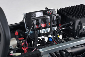 新製品は、電磁誘導式とマニュアル式の2つで、新開発のリチウムイオン電池と車両コントロールユニットを搭載した。バッテリーは開発から製造までを一貫してヤマハ発動機で行った内製品だ。リン酸鉄系の材料を採用することで高信頼性と長寿命を実現した。バッテリー容量は4kWhと6kWhの2種類で、必要な走行可能距離やコースの特性、プレースタイルなどに合わせて選ぶことができる。