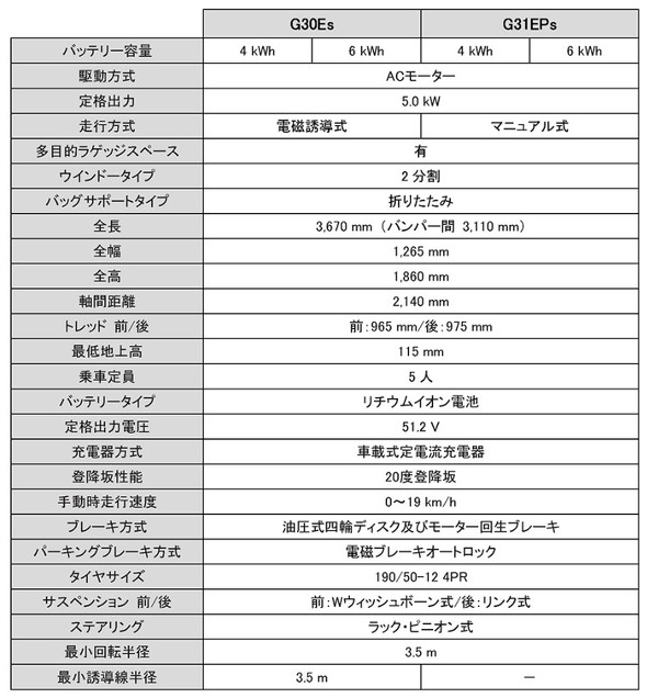ヤマハ発動機は5人乗り電動ゴルフカーの新製品「G30Es」「G31EPs」を発表した。
