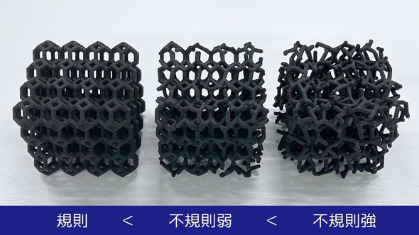 また、不規則さの度合いを制御することで、多方向からの衝撃吸収性が向上。強度と軽量化の両立が求められる航空宇宙やヒートシンクといった放熱用途などでの活用が見込まれる。