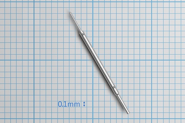 直径を従来比で約20%細い0.08mmにするとともに、ばねの製造方法を見直し、各部品の加工精度と組み立て公差の精度を高めることで、安定した接触抵抗値、ばね圧、先端位置精度を獲得。5G通信やAI(人工知能)技術の普及により、小型化、高周波化が進む半導体の検査ニーズに対応する。
