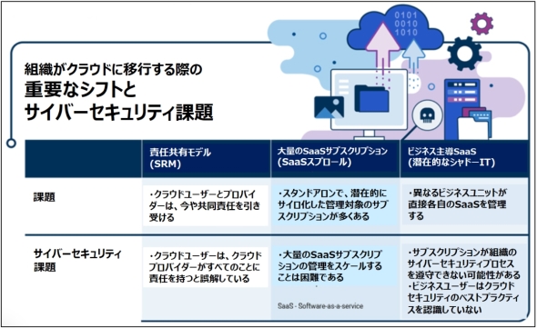 まず図1は、組織がクラウドに移行する際の重要なシフトと課題を示したものである。