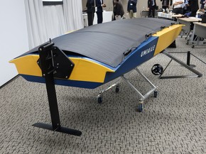 試作品は船体上面のソーラーパネルで発電し、動力用のモーターを駆動する方式だ。太陽光発電で数カ月間稼働し続けることを想定している。ニーズや用途に応じて風力発電を追加したり、燃料を使う発電機を搭載したりする可能性もある。