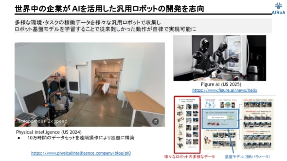 これをきっかけに、世界中の企業がAIを活用した汎用ロボットの開発を志向するようになっている。ただし、それらの取り組みはオープンではなくプロプライエタリであり、個社の成果にとどまっている。
