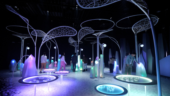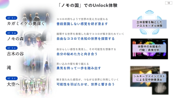 Unlock体験エリアは、ZONE1の「カガミイケの奥深く」ではTechnics製スピーカーをふんだんに使用した立体音響を軸とするクロスモーダル体験を用意している。