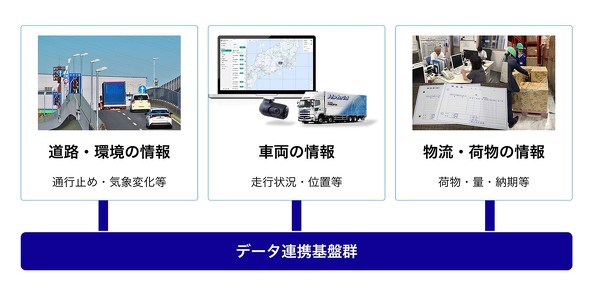 自動運転車と共同輸送を掛け合わせて高速道路の長距離輸送の課題解決を目指すのが、ダイナミックマッププラットフォームとBIPROGY、NEXT Logistics Japan(ネクストロジスティクスジャパン)、ヤマト運輸の4社だ。NEDO(新エネルギー・産業技術総合開発機構)が公募する「産業DXのためのデジタルインフラ整備事業/デジタルライフラインの先行実装に資する基盤に関する研究開発」に採択され、自動運転車×共同輸送の実現に必要なシステムの開発に取り組んでいる。