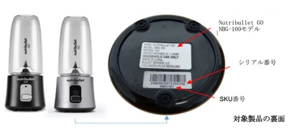 デロンギ・ジャパンは、充電式ブレンダー「Nutribullet GO NBG-100モデル」(販売期間:2022〜2023年)の一部製品について、「充電中にバッテリーのセルが過熱し、発火の可能性がある」とし、2025年3月24日にリコールを発表した。リコール対象数は約1万6458台で、回収/返金(Amazonギフトカード)で対応する。なお、経済産業省のWebサイトには、重大製品事故を契機としたリコール製品として明記されている。