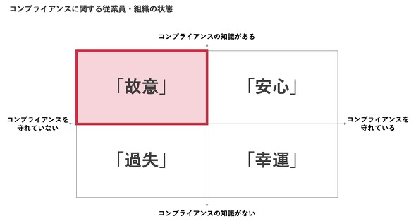 連載第1回でもお伝えした通り、多くのコンプライアンス違反は「故意」によって起きています(図1)。言い換えれば、「ダメだと分かっていても、不正をしてしまう」ということです。