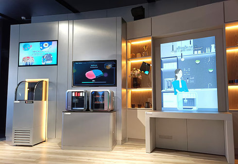 ブース名称は「家庭で作る霜降り肉」で、3Dバイオプリント技術により作られた培養肉の実物や、細胞を培養して肉を作る装置「ミートメーカー」のコンセプトモデルなどを展示する。