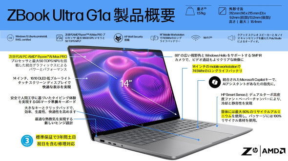 最新SoC「AMD Ryzen AI Max PRO」を搭載する「HP ZBook Ultra G1a 14 inch Mobile Workstation」は、国内製造業の設計開発者が待ち望んだ小型軽量かつ高性能の14インチモバイルワークステーションだ。「SOLIDWORKS」などの3D CADツールを自在に扱えるだけでなく、長時間の安定稼働やセキュリティ機能により安心して利用できる。