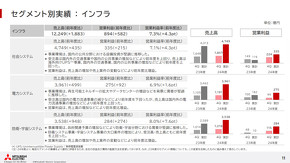 売上高、営業利益ともに大きく伸ばしたインフラ分野では、社会システム分野で海外向けUPS(無停電電源装置)などの成長があった他、電力システム分野でのデータセンター向けでの需要伸長があった。ただ、最も大きく成長したのは防衛・宇宙システム分野だという。三菱電機 常務執行役 CFOの藤本健一郎氏は「政府関連予算の増加により防衛、宇通分野の需要が大きく伸びた。案件価格も改善し、それらが業績に大きくプラスに働いた」と説明する。