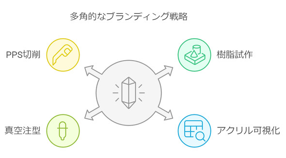 市場が多様化する中で、たった1つのメッセージだけではカバーし切れないニーズが増えている。そのため、企業が保有する多様な技術や設備を切り口ごとにブランディングを行い、それぞれの顧客層に向けて最適なメッセージを発信することが重要である。