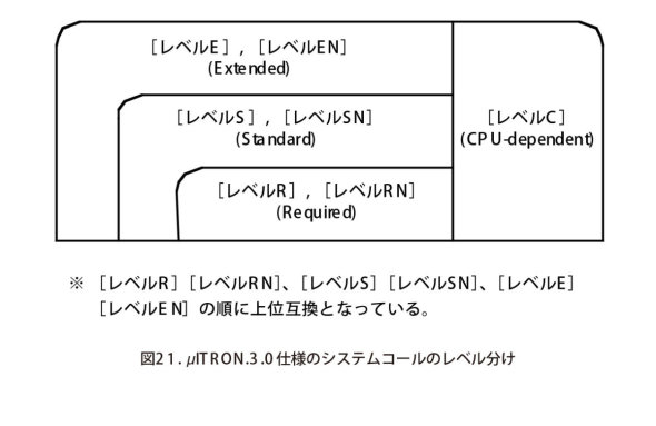 こうした動向を受けて、1993年にはμITRON3がリリースされる。このμITRON3は、ほぼITRON2と同等の機能を提供できるようになった一方で、System Callに複数のレベル(図3)を設け、最小構成はRのみ、最大構成はENとして、あとは利用するシステムの能力にあわせて選択できるようになった。