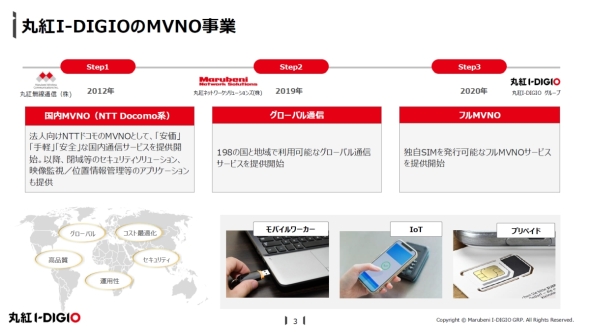 丸紅と同社グループの丸紅I-DIGIOホールディングス、ソラコムの3社は2025年5月12日、東京都内で会見を開き、丸紅とソラコムのIoT領域における戦略的協業の一環として、ソラコムと丸紅I-DIGIOによる通信事業の新会社を設立すると発表した。