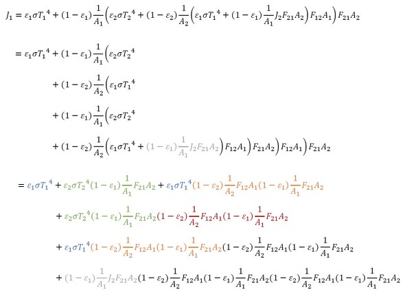 では、式34をゴリコリ計算していきましょう。その前に射度Jを求めます。式29でした。iを1にjを2に表記を変えます。