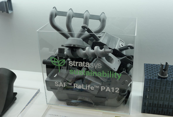 ストラタシス・ジャパンは「人とくるまのテクノロジー展 2025 YOKOHAMA」に出展し、使用済みPA12パウダーを同社製3Dプリンタ「Stratasys H350」で再利用可能にするソリューション「SAF ReLife PA12」を訴求していた。