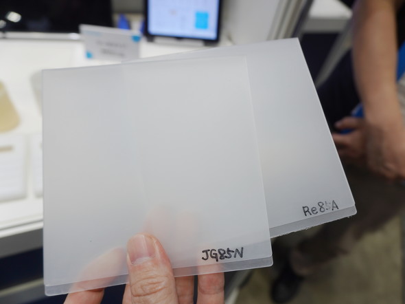 アーネストン 環境対応グレードも、アーネストンとほぼ同じ構成のコンパウンド成形材料だが、利用されているPPのうち30%でリサイクル品が使われている点で異なる。クラレの説明員は「環境対応グレードはリサイクルPPが使用されているが、性能はアーネストンと同等だ」と話す