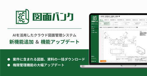 New Innovationsは2025年5月19日、AI(人工知能)を活用した製造業向けクラウド図面管理システム「図面バンク」に新機能を追加したことを発表した。案件単位で管理する図面や関連資料の一括ダウンロードが可能になった。