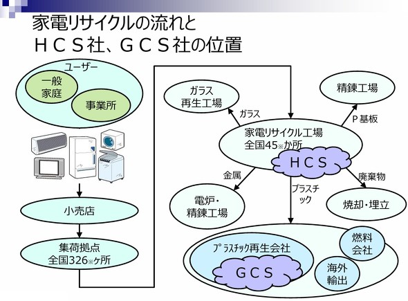MONOist 国内における使用済み家電の解体/プラスチック回収の流れやGCSの位置付けはどうなっていますか。