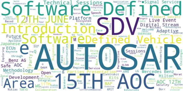 第16回AOCの講演の一部を、日本で、そして、日本語で改めて講演するというこのイベント、SDV(ソフトウェアデファインドビークル)の時代(?)の中での、AUTOSARやその関連団体の動向などのご紹介が中心になります(英語への同時通訳は行いません/only in Japanese Language)。
