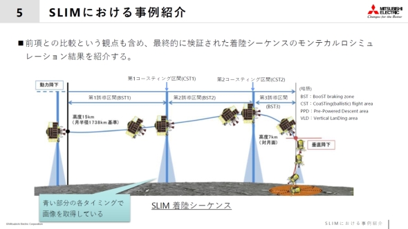 地球の約6分の1とはいえ重力がある月面に着陸する場合、衝突の力を緩和するための姿勢変更や噴射が必須になる。しかし、非常に厳しい重量や容積の制限の中で開発されるSLIMは余分な燃料を積むことはできない。このため、月を周回する軌道から着陸に向けた動きを始めると、SLIMはもう以前の周回軌道には戻れない。SLIMは、このような条件下で、月面にピンポイント着陸するというミッションを成し遂げたことになる。
