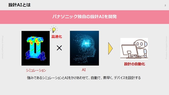 パナソニック ホールディングスは、シミュレーション技術とAI(人工知能)を掛け合わせることで、デバイス設計の自動化を実現する「設計AI」の開発に取り組んでいる。