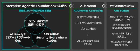 個社や業務ごとのSIという従来のやり方では、複雑化する経営課題の解決が困難になってきている。今後は、企業自身がデータとAIを駆使して、経営や事業、業務を自律的かつ継続的に進化させることが重要となる。そのためには、データとAIの活用に向けたビジネスの枠組み「Enterprise Agentic Foundation(エンタープライズエージェンティックファウンデーション)」の構築が求められる。