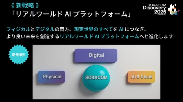 ソラコムは、生成AI時代における新たなビジョンとミッション、プラットフォーム戦略を発表した。プラットフォーム戦略では、現実世界の全てをAIにつなぎ、より良い未来を創造する「リアルワールドAIプラットフォーム」への進化を目指すという。