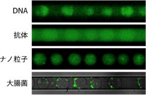 また、混合溶液にあらかじめ物質を加えると、マイクロカプセル内部に効率よく物質を内包できた。実験では、核酸や抗体、ナノ粒子、大腸菌を内包できることを実際に確認している。