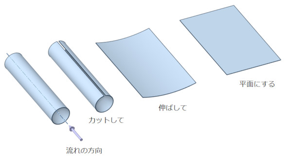 これによって、流れを2次元問題として取り扱うことができるようになりました。