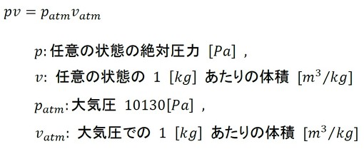 1[kg]当たりの体積vは、密度ρの逆数なので、ρ=1/vです。これを式21に代入し、変形します(式22)。