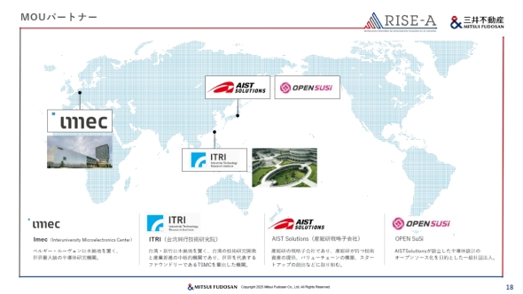 なお、LINK-Jは会員数が951、2024年のイベント開催数が1151件、cross Uが会員数316、2024年のイベント開催数が316件となっており、産業支援コミュニティーとしての実績を着実に積み上げている。また、LINK-Jとの関連では2019年、都心に立地する賃貸型の研究開発拠点である「三井リンクラボ」を開設しており、産業支援コミュニティーの活動を産業デベロッパーとしての事業拡大につなげた好例になっている。RISE-Aについても、現時点では検討中としているものの、三井リンクラボの活用やサイエンスパークの整備などが候補に挙がっているという。