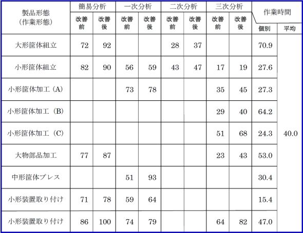 有効作業分析法を活用した結果、分析実施例から約20〜30%の作業時間の低減が見込めることが実証されました。