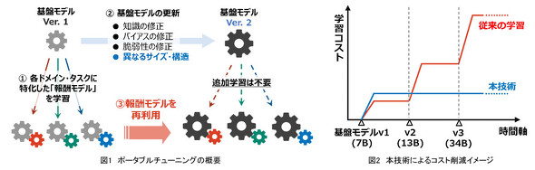 生成AIの活用が進展する中、基盤モデルの更新に伴う特化モデルの再学習コストが課題となっている。同社はこのコストの大幅な削減を目指し、学習転移技術を進化させた、ポータブルチューニング技術を開発した。
