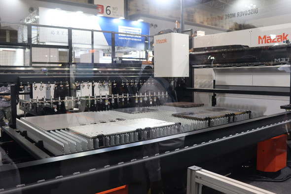 ヤマザキマザックは鍛圧機械の国際展示会「第8回 プレス・板金・フォーミング展(MF-TOKYO 2025)」(2025年7月16〜19日、東京ビッグサイト)において、レーザー加工機への素材供給、タップ加工、仕分け作業を自動化する「MAZAK LASER FA SYSTEM」を出展した。