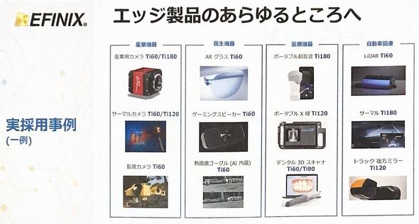 エフィニックスのFPGAの特徴は同じ性能であれば圧倒的に電力消費量を小さく抑えられるという点だ。これを生かし、電力要求の厳しいエッジ製品への積極的な採用が進んでいる。中西氏は「エフィニックスのFPGAを使うことで、今までFPGAがあまり採用されてこなかった市場/製品に入れられる」と語る。
