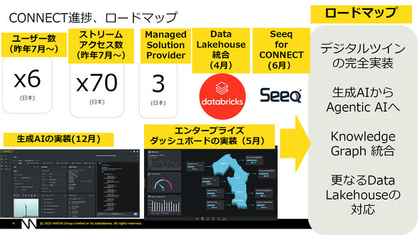 国内では2024年7月時点と比較してCONNECTのユーザー数は6倍に、ストリームアクセス数は70倍になった。AVEVA クラウドソリューション営業部 部長の村林智氏は「当初はOTデータをクラウドで扱うことに対してまだ抵抗があったが、ふたを開けてみたらユーザー数も、扱うデータ量も大きく増えた。CONNECTは完全にニュートラルでオープンなプラットフォームだ。CONNECTというクラウドのプラットフォームを使って、ソリューションを提供していくパートナーも広がっている」と語る。