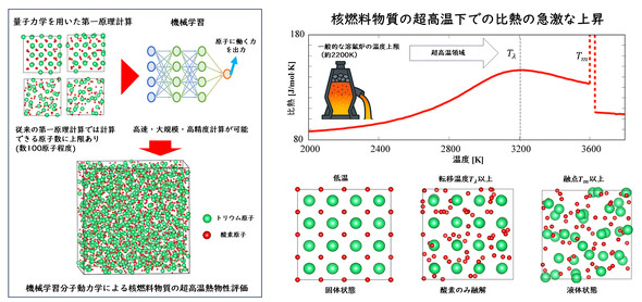 日本原子力研究開発機構は2025年7月15日、機械学習(ML)を用いた原子レベルのシミュレーション技術により、酸化物核燃料が高温環境下で示す、急激な比熱上昇の原因を明らかにしたと発表した。