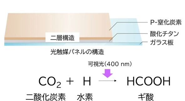三菱電機と東京科学大学は、可視光を吸収する有機半導体である窒化炭素を用いた人工光合成触媒系を平面状に形成および固定化し、CO2からエネルギー物質のギ酸を生成させることに成功した。