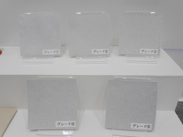グレード3は、電波吸収帯域が75G〜85GHzで、最大電波吸収性能が-25dB(=94%)、最大電波吸収性能時周波数が80GHz、主な対象は車載レーダーとなる。グレード4は、電波吸収帯域が82G〜96GHzで、最大電波吸収性能が-28dB(=96%)、最大電波吸収性能時周波数が88GHz、主な対象は新幹線の通信となる。グレード5は、電波吸収帯域が84G〜100GHzで、最大電波吸収性能が-31dB(=98%)、最大電波吸収性能時周波数が91GHz、主な対象は6Gの通信機器だ。