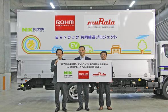 ロームは、村田製作所と共同で物流により発生する温室効果ガスの抑制と輸送コスト低減を目的に、日本通運のEVトラックを使用した共同輸送を電子部品業界で初めて開始する。