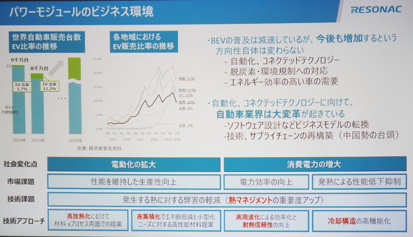 畠山氏は「近年、BEV(電気自動車)の需要は減速しているが、今後も増加するという方向性自体は変わらないとみている。以前として、EVの高性能化を実現するために、パワーモジュールでは高出力化/高密度化を実現する材料が求められている」と述べた。