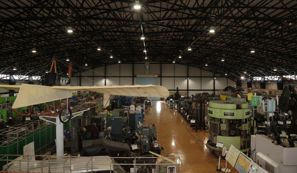 工業技術博物館の本館内に足を踏み入れると、飛行機の格納庫のような広さ3000m2もの建屋の中に、工作機械群がずらりと並ぶ、圧巻の光景が広がった。
