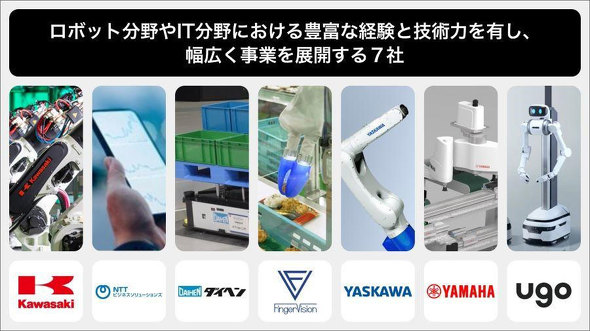 同開発事業に関わるのは、ロボット、IT分野で多くの実績や技術力を有する7社だ。NTTビジネスソリューションズのほか、川崎重工業、ダイヘン、FingerVision、安川電機、ヤマハ発動機、ugoが名を連ねる。