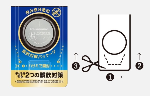 同電池は「CR2032E」「CR2025E」「CR2016E」の3品種4品番として、コイン形リチウム電池のラインアップに追加され、2025年10月10日に発売される。これらの電池は、乳幼児を対象とした検証を通じて、誤飲を抑制するために効果的とされる苦み成分の最適な塗布量を確認した上で設計されている。加えて、ハサミを使わないと開封できない独自の誤飲対策パッケージを採用している。