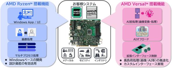 同開発キットは、AMD Ryzen組み込み型CPU(x86)とAMD Versal適応型SoC(FPGA)を併載する、AMD Embedded+アーキテクチャを採用したマザーボードを搭載する。プログラマブルロジックとVersal AIエンジンを活用し、消費電力と遅延を抑えた画像処理やエッジ推論を実行する。