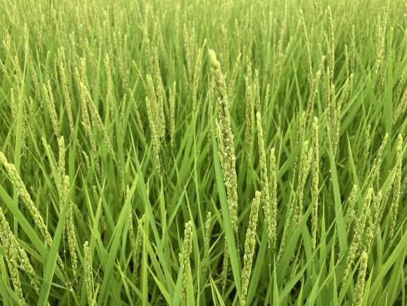 その頃にはちょうどイネも開花の時期を迎えていました(図1)。正確には、いったん開いた後に閉じ、籾殻の外に雄しべが残されている時点で撮影したものです。