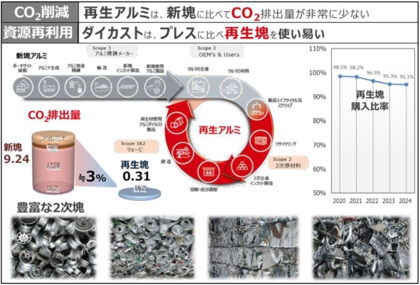 図7に示すように、ダイカストはCO2排出量の削減や資源再利用の観点でメリットがありSDGs※7)や地球温暖化防止につなげやすい。